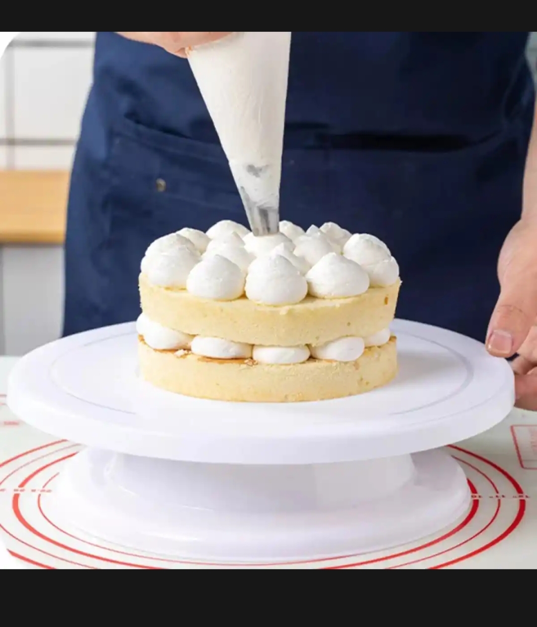A cake rotator is a kitchen tool designed to help decorate cakes with ease. Typically featuring a rotating base, it allows the cake to spin smoothly while you apply frosting, decorations, or icing. This tool ensures even coverage and precision when decorating, making it easier to work around the entire cake. Cake rotators are often made of durable plastic or metal and may have a non-slip surface for stability. They are ideal for both professional bakers and home decorators looking to create beautifully decorated cakes.
